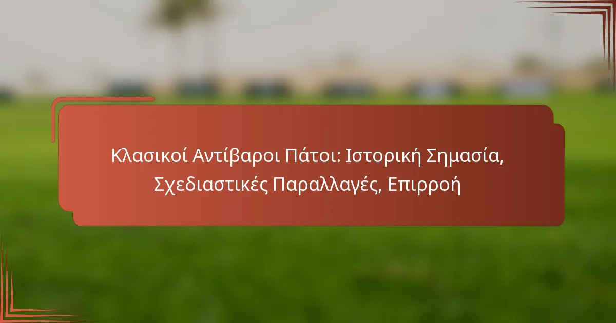 Κλασικοί Αντίβαροι Πάτοι: Ιστορική Σημασία, Σχεδιαστικές Παραλλαγές, Επιρροή