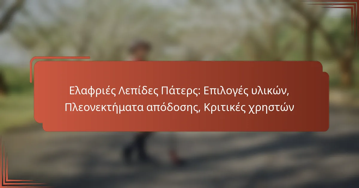 Ελαφριές Λεπίδες Πάτερς: Επιλογές υλικών, Πλεονεκτήματα απόδοσης, Κριτικές χρηστών
